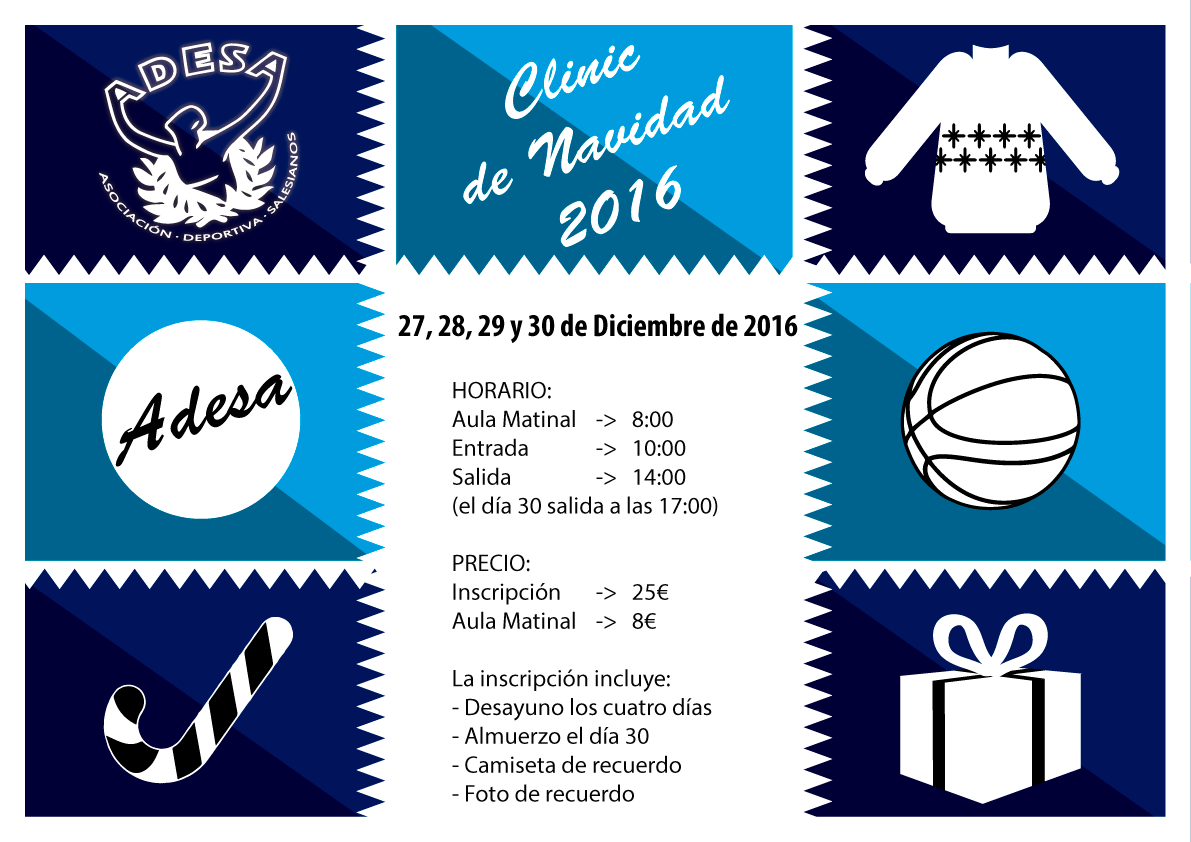 Porsupuesto, y como cada Navidad, nosotros pasaremos estas fechas con nuestra familia, con todos los entrenadores, jugadores y familiares que hacen que ADESA sea posible y, como ya es tradición, lo celebraremos con nuestro Clinic De Navidad que tendrá lugar desde el Martes 27 hasta el Viernes 30.