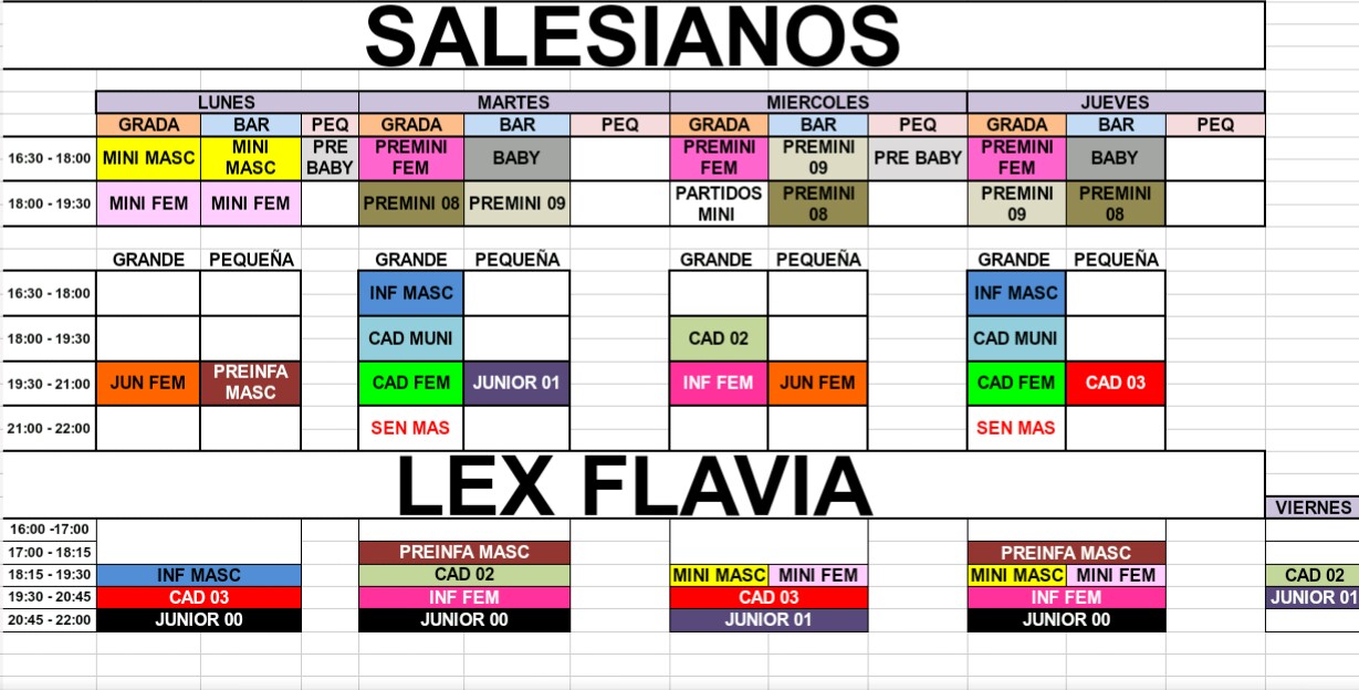 A partir del Lunes 11 de Septiembre empezaremos a utilizar nuestros horarios definitivos para la temporada 2017/2018 tanto en el Colegio Salesiano San Bartolomé como en el Colegio Lex Flavia Malacitana.